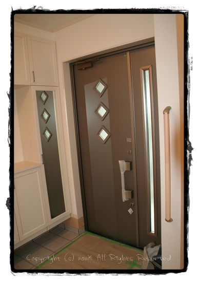 ドアが付いても今日まで養生されてて見れなかった玄関ドア。