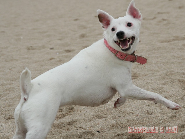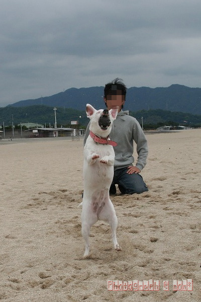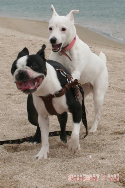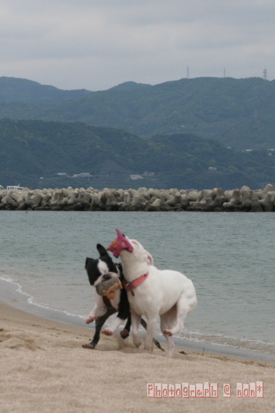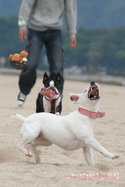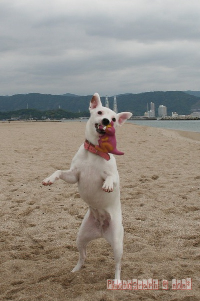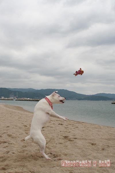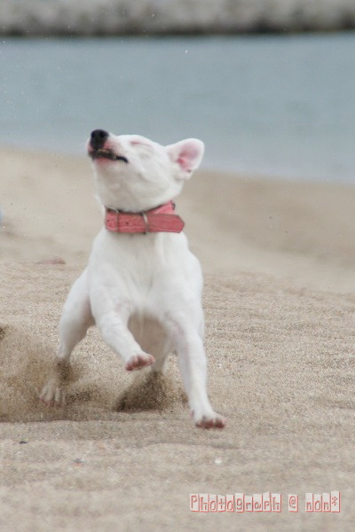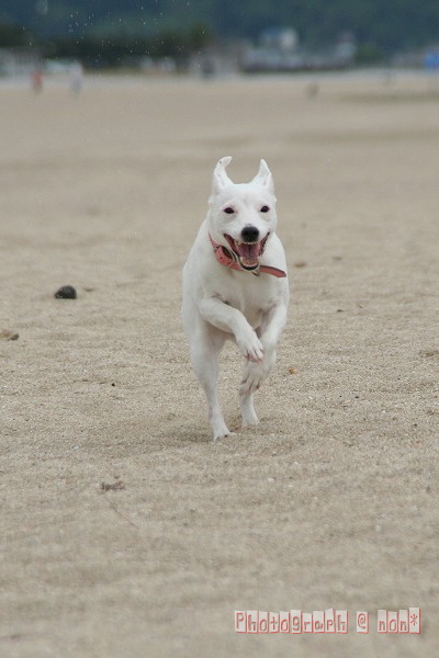 他のわんこのちっこ臭嗅ぎまわったり海へ入ってみたり